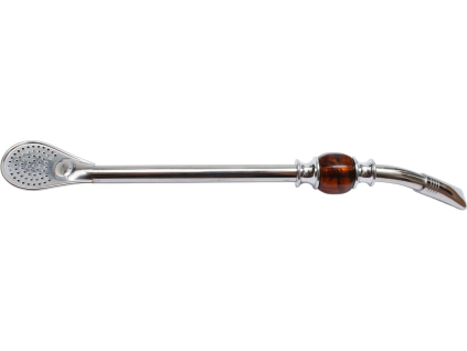 Bombilla vyrobená z nehrdzavejúcej ocele s dvomi chladiacimi krúžkami a čiernym kameňom.