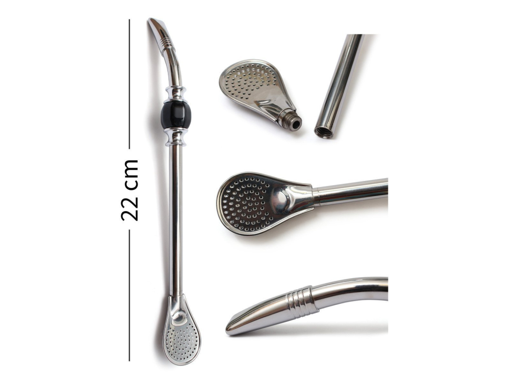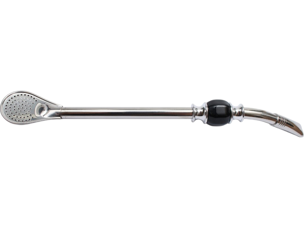 Bombilla vyrobená z nehrdzavejúcej ocele s dvomi chladiacimi krúžkami a čiernym kameňom.