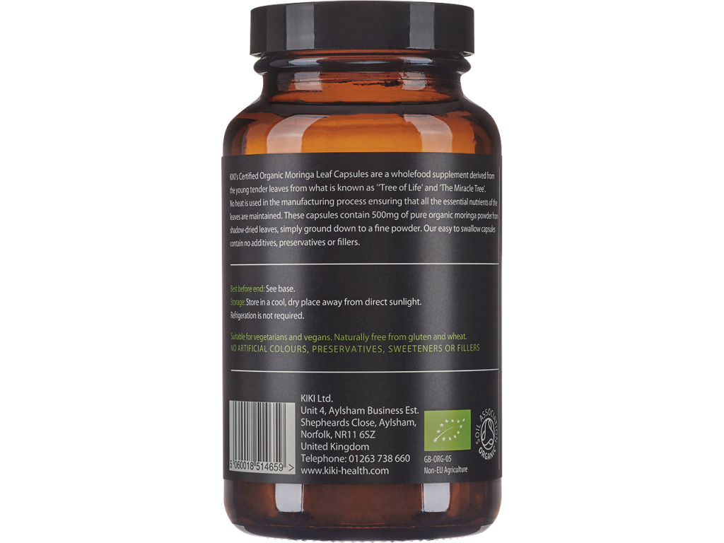 BIO listy moringy v produktoch Kiki Health sa zbierajú z ekologicky pestovaných stromov v Indii. Listy sa zbierajú raz za 30 až 45 dní, čím sa zabezpečí výber mladých, jemných listov.