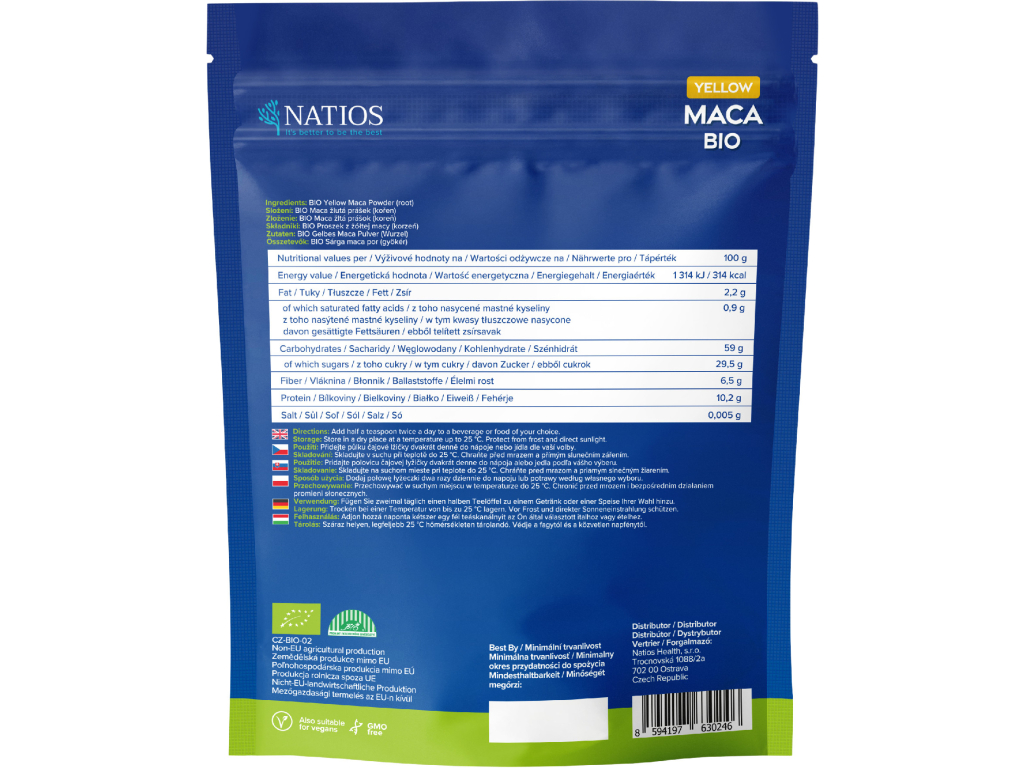 NATIOS Maca yellow (žltá) BIO prášok, 200 g