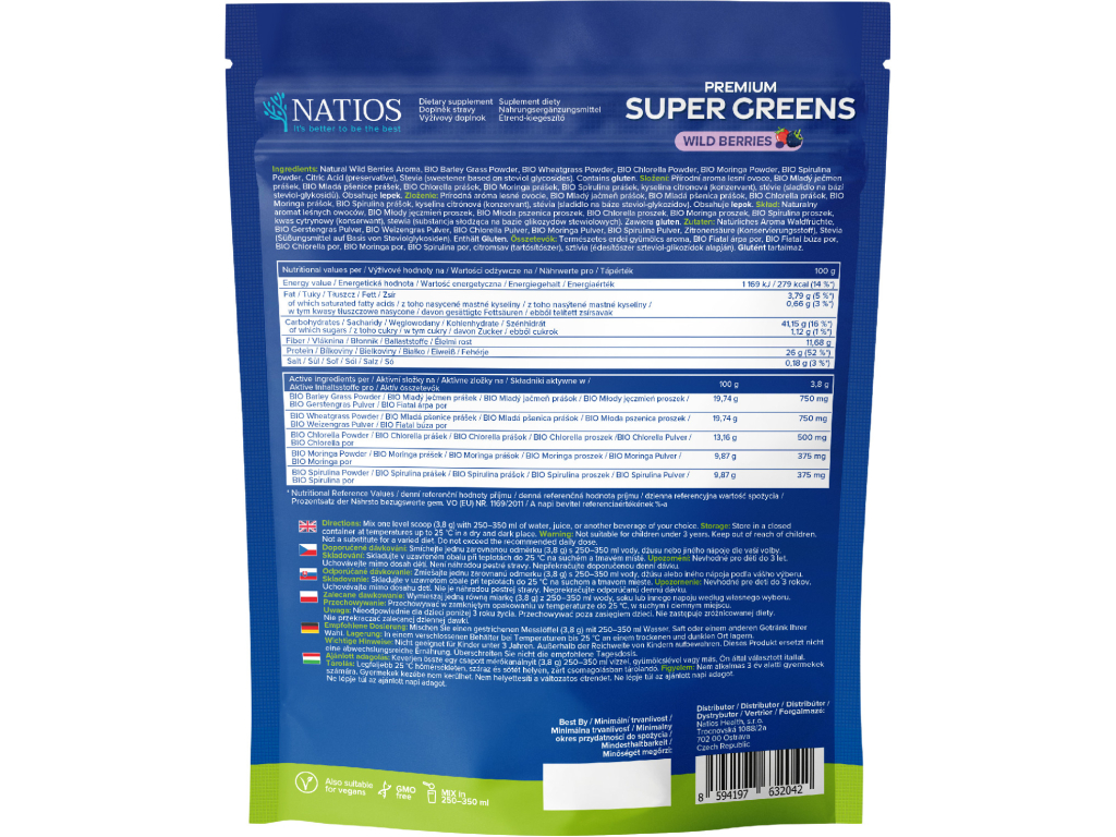 NATIOS Premium Super Greens, Lesné ovocie, 228 g