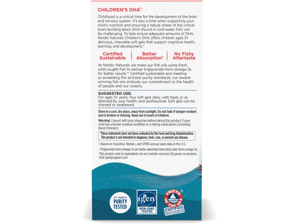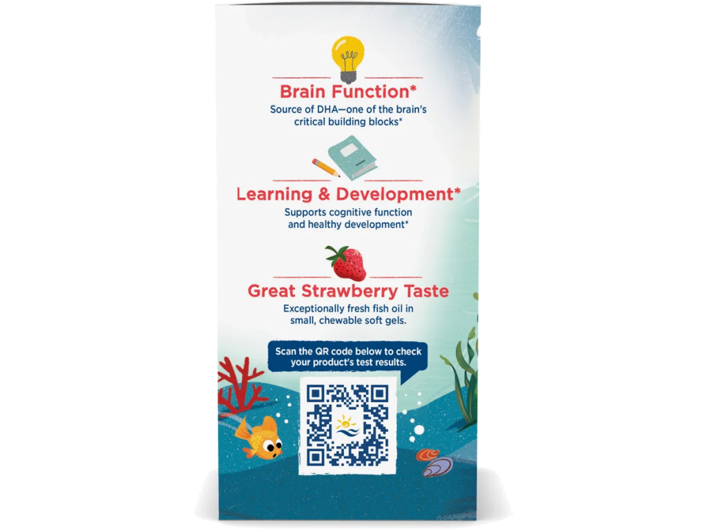 Nordic Naturals Children's DHA, Omega-3 pre deti, 250 mg, Jahoda, 90 mini softgel kapsúl