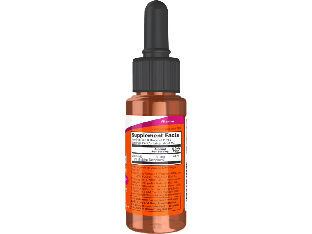 NOW FOODS Tekutý vitamín E, 90 IU, 150 dávok, 30 ml