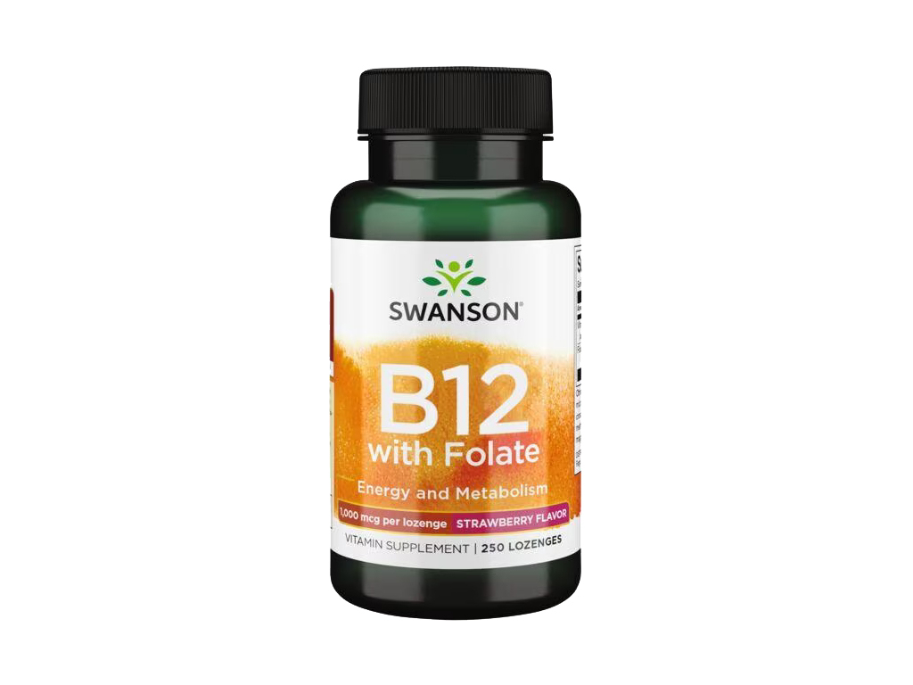 Swanson Vitamin B12 with Folate, 1000 µg, 250 pastiliek s jahodovou príchuťou