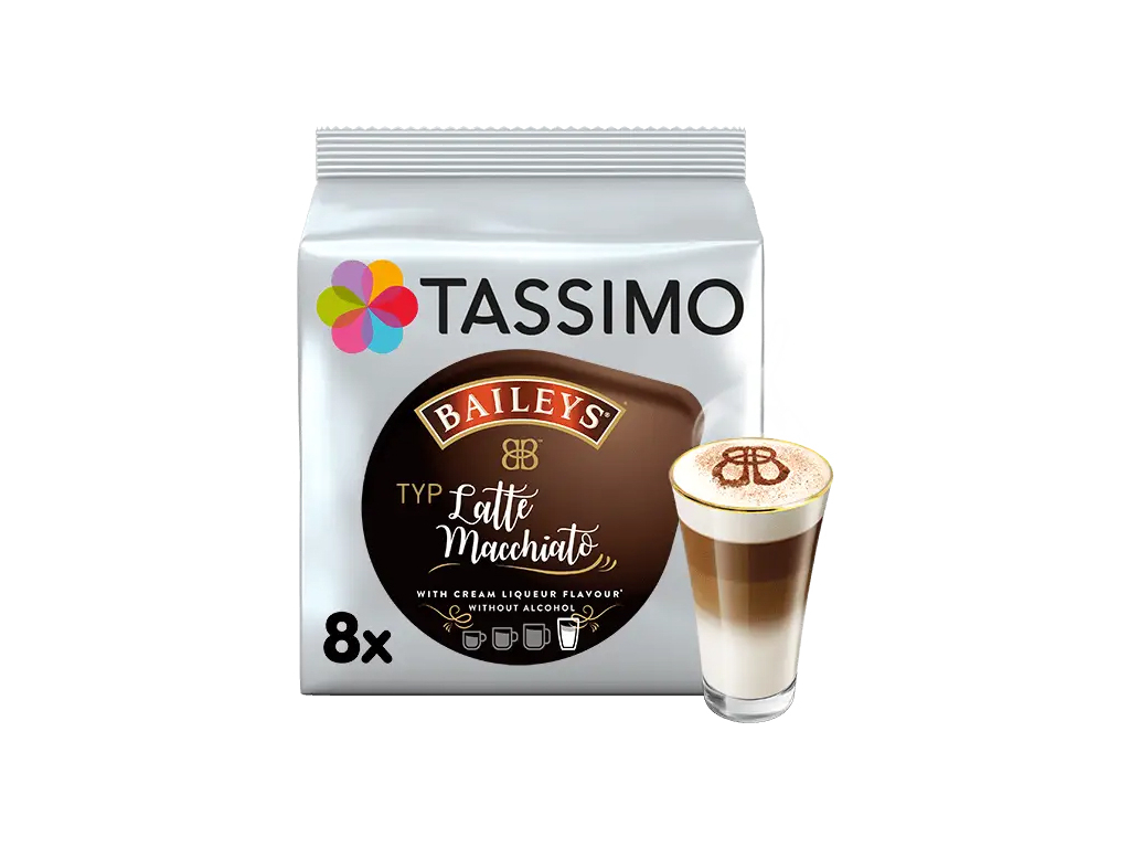 Vychutnajte si dokonalé Baileys Latte Macchiato od TASSIMO. Toto Latte je lákavou kombináciou krémovej chuti likéru Baileys, jemnej peny a dokonale pražených zŕn espressa.